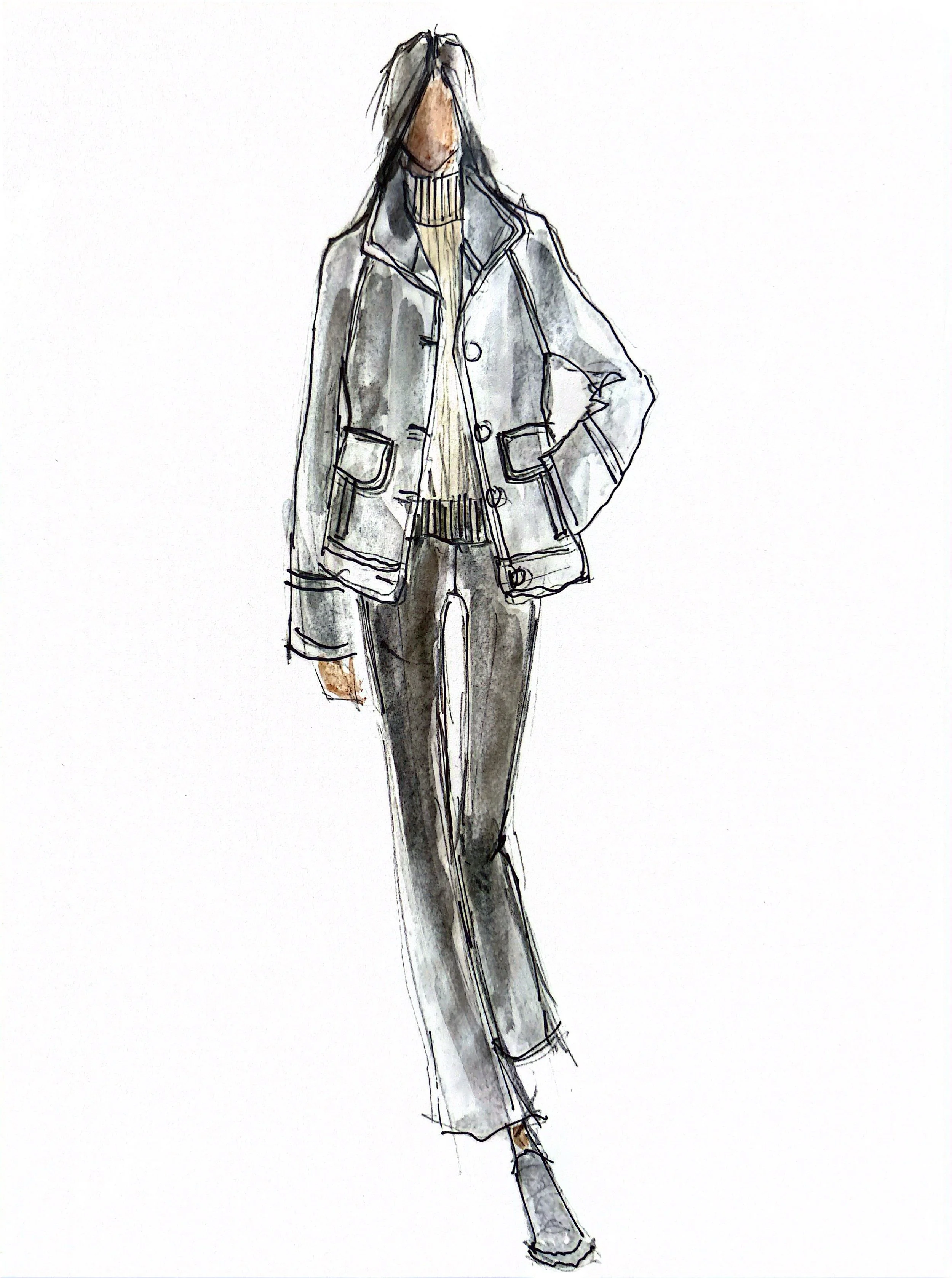 These illustrations capture the foundational language of NEWNORM modern silhouettes, purposeful proportion and refined structure and ease, Each sketch is a study of attitude and detail- textural outerwear, tailored separates and layered looks that blend heritage inspiration with contemporary utllity. Rendered by hand, these drawings serve as both the blueprint and narrative, revealing how concept evolved into collection and style begins with a line